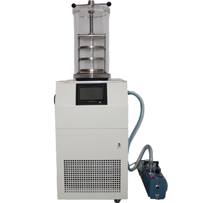 立式凍干機(jī)(1臺)、真空泵2XZ-4(1臺)、玻璃罩(1個,含壓蓋裝置)、不銹鋼樣品架(1個)、不銹鋼樣品盤(3個)、真空連接管(1根)、●可選配:(1)進(jìn)口真空泵(2)油霧過濾器(3)防返油裝置